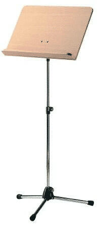 Zenekari kottaállvány – bükkfa kottafelülettel, krómozott vázzal Ez a magas minőségű zenekari kottaállvány ötvözi a klasszikus fa eleganciáját a modern fém szerkezet stabilitásával. A bükkfa kottafelület stílusos megjelenést biztosít, míg a krómozott acél váz tartósságot és masszív tartást garantál. A prizmás csatlakozás lehetővé teszi a kottafelület gyors és stabil felhelyezését az állványra. A fém talprész lehajtható lábakkal van ellátva, így könnyen szállítható és helytakarékosan tárolható. A magasság egyszerűen állítható 650 és 1.255 mm között, így mind ülő, mind álló helyzetben kényelmesen használható. Igény esetén egyedi kottafelületek (különböző nemesfákból vagy anyagokból) is elérhetők. Jellemzők:
